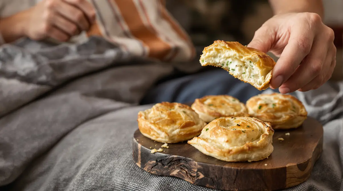 Die Füllung ist cremig, aber stabil. Der Teig wird nur gefaltet, nicht kompliziert geformt. Und der Ofen erledigt den Rest. Sie brauchen kein besonderes Talent, nur eine Rolle Blätterteig und Lust auf etwas Herzhaftes.